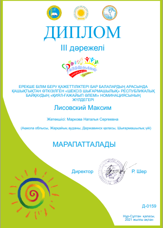 3-орын Лисовский М.Е. «Қиял-ғажайып әлемі» отбасым туралы әңгіме. Жетекшісі Маркова Н.С.